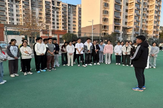 在西操场举行冬训动员大会。研究生辅导员李坤、冬训教练员及全体冬训队员出席本次大会。