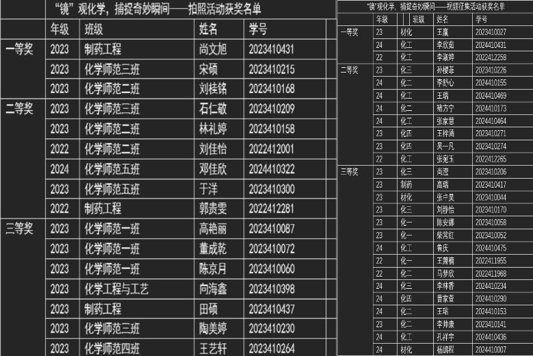 于11月26日至12月10日举办“‘镜’观化学,捕捉奇妙瞬间”主题拍照比赛。该活动由黄色仓库
