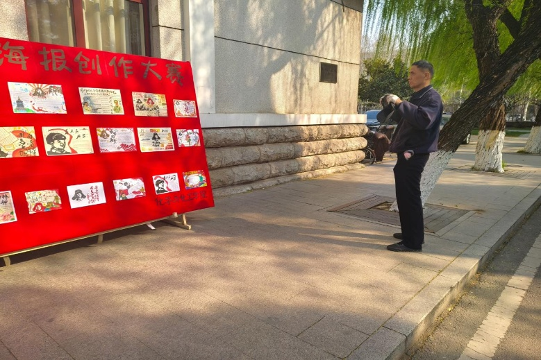 图为老师欣赏展板内容