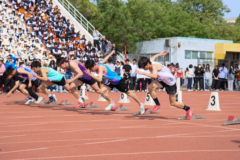 图为学院学子进行100米跑步比赛