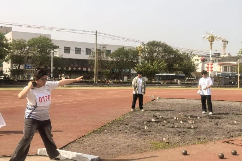 图为学院学子进行铅球比赛