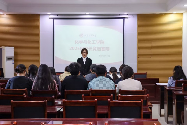 于4月29日在化学楼226举行2025届团委、学生会部长换届竞选答辩。团委书记王亚平,辅导员冯德浩、黄秉帅、孙兰馨、李坤、曾川、夏玉鑫、梁梦琦以及2024届和2025届主席团出席本次竞选答辩并担任评委。