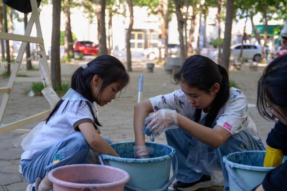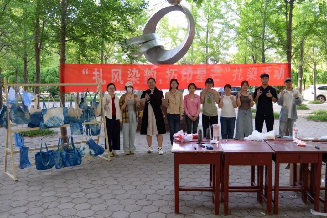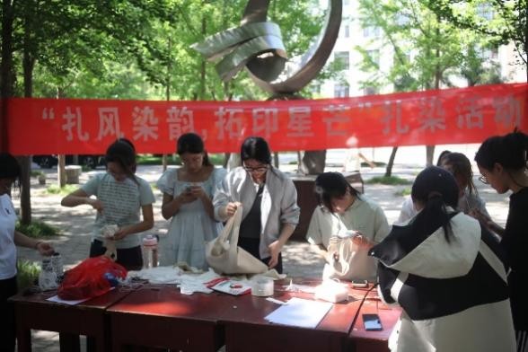 在院前银杏树林开展了融合传统技艺与学科特色的“扎风染韵,拓印星芒”扎染活动。本次活动由黄色仓库