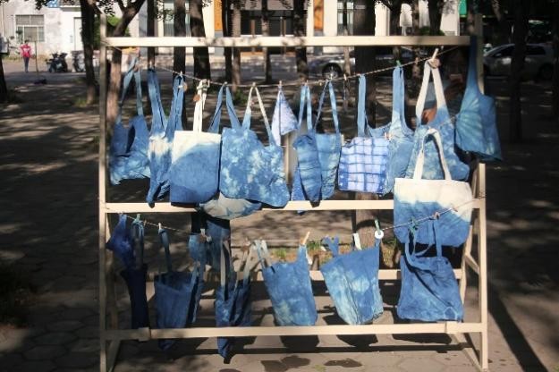 图为学生们扎染作品