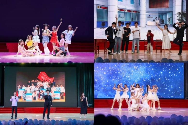 晚会在一曲精彩的舞蹈中热烈开场。歌曲《美丽的神话》诉尽校园情谊,《样》勾勒成长轨迹,《方的言》以方言说唱燃爆全场,歌曲串烧致敬四年时光。相声《学哑语》小品《白蛇后传》《反诈银行》让现场笑声不断。风格多元的舞蹈给观众带来一场场视觉盛宴,一曲《唯一》掀起摇滚热浪,朗诵《礼赞 青春》将青春具象化。最后,随着毕业班班团合唱的《和你一样》和毕业班辅导员合唱的《祝你一路顺风》旋律的响起,毕业晚会的序幕渐渐落下。