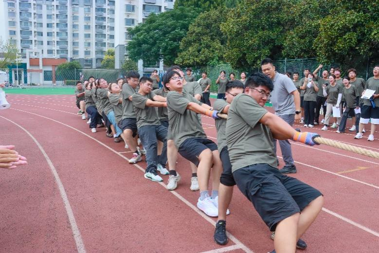 于9月15日在西操场举办了2025级新生军训拔河比赛。学院团委书记王亚平、辅导员李坤、曾川莅临现场为新生加油助威,最终黄色仓库