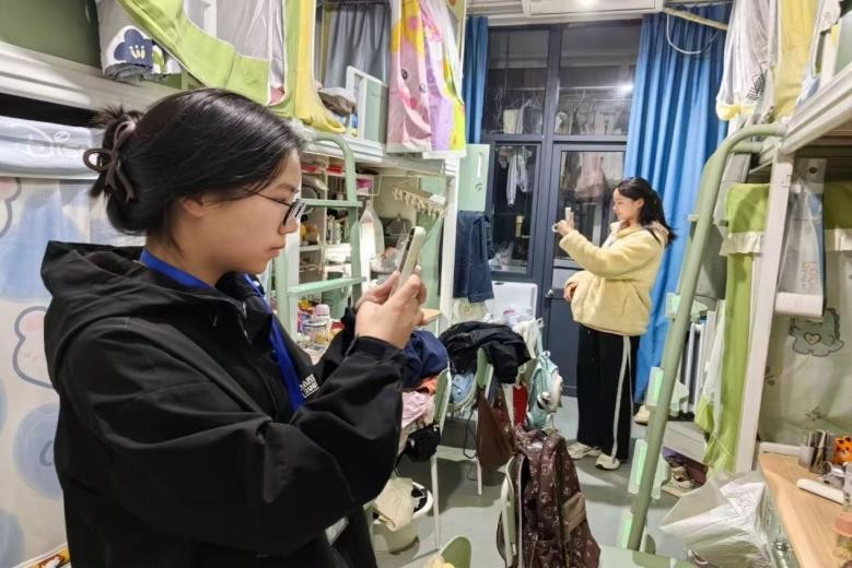 图为党员学生干部排查宿舍隐患