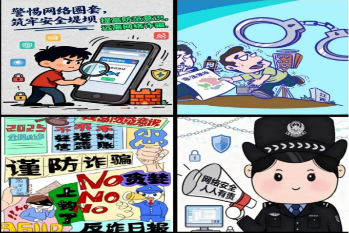 本次“警惕网络圈套,筑牢安全堤坝”主题设计比赛征集海报与宣传卡通形象两类作品,海报需含“不点陌生链接”等警示标语且兼具视觉冲击与科普性,卡通形象需贴合“安全守护”定位并附寓意说明;活动通过线上平台征集作品。在此活动中,同学们积极参与,创新思维,创作了一幅幅风格鲜明的海报和设计了一个个内涵丰富的卡通形象。每个作品都紧紧贴合本次活动的主题,提高了同学们的网络安全防范意识。