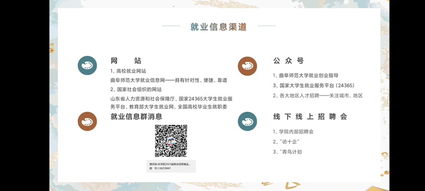 会上老师从毕业生情况、就业市场、就业形势、毕业生专业分析等方面展开,引导毕业生端正就业择业态度,培养良好的就业心态,及时了解行业需求变化,结合自身特点和专业优势,拓展多元化职业发展道路。其中着重介绍多种可供同学们查询就业信息的有效渠道,强调各类公司的招聘考试,公务员、事业编考试时间以及报名网站等注意事项。