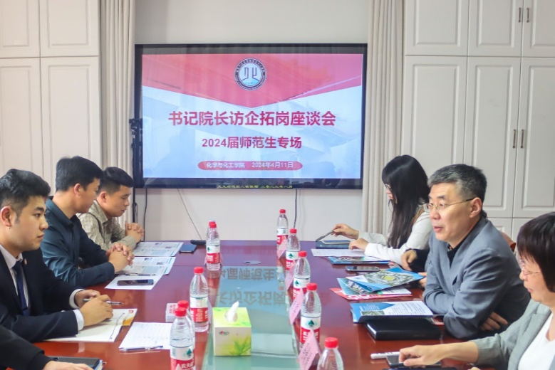于4月11日在化学楼209举办书记院长访企拓岗座谈会——2024届师范生专场。学院党委书记赵琪、院长冯媛媛、党委副书记孙金玲、辅导员孙兰馨、李坤、李文静、曾川参加座谈会,座谈会由曾川主持。济宁市金乡县青华园外国语学校、大智金复教育培训学校、曲阜孔子高级中学三家企业参加座谈。