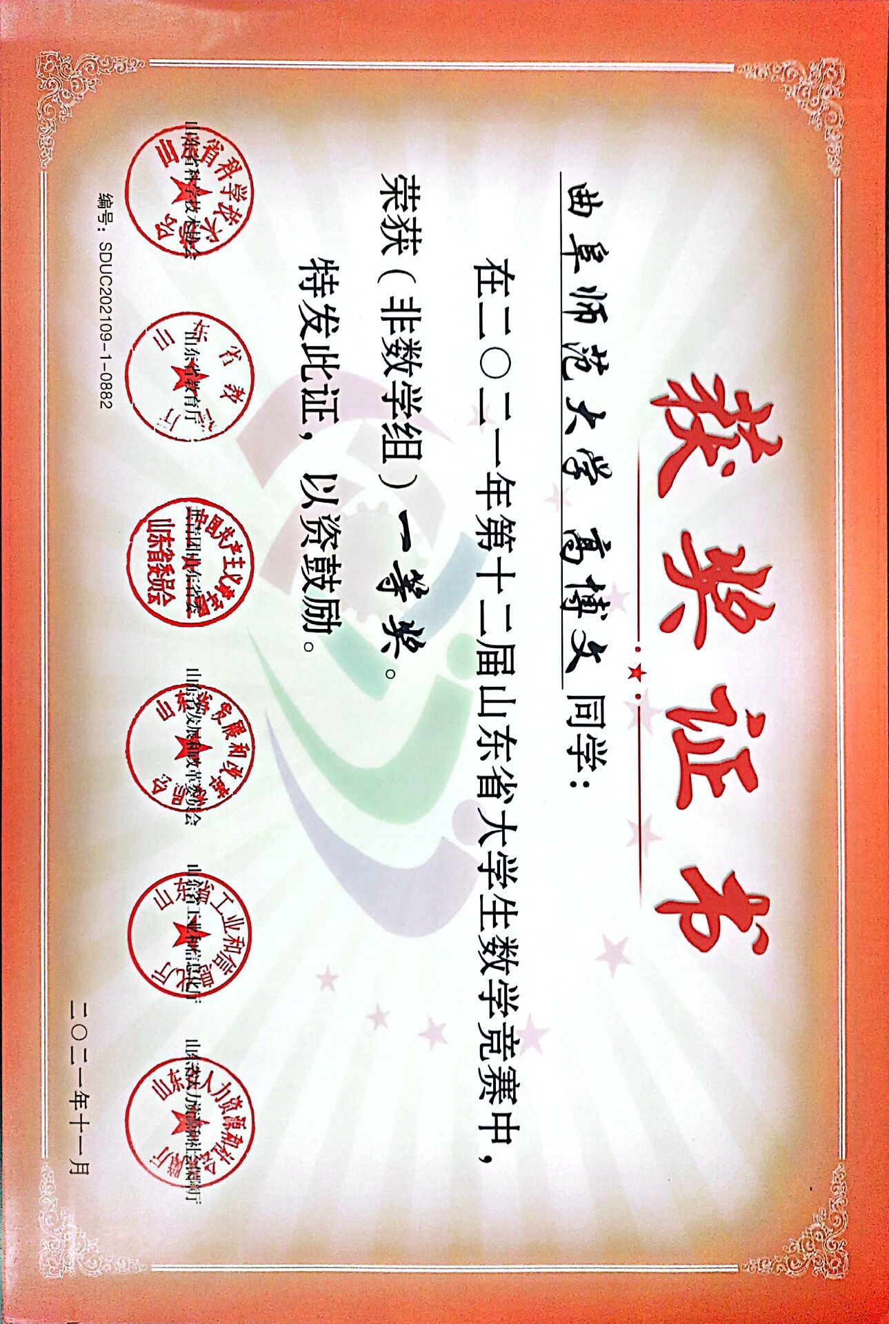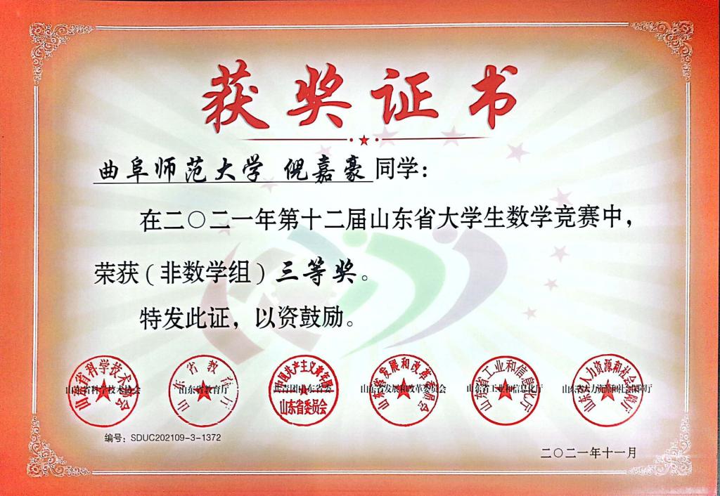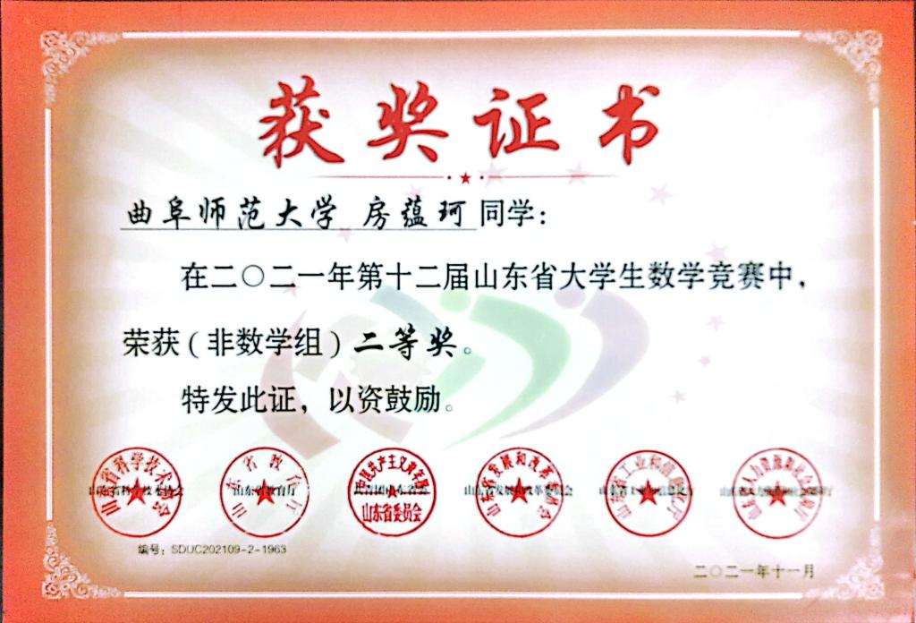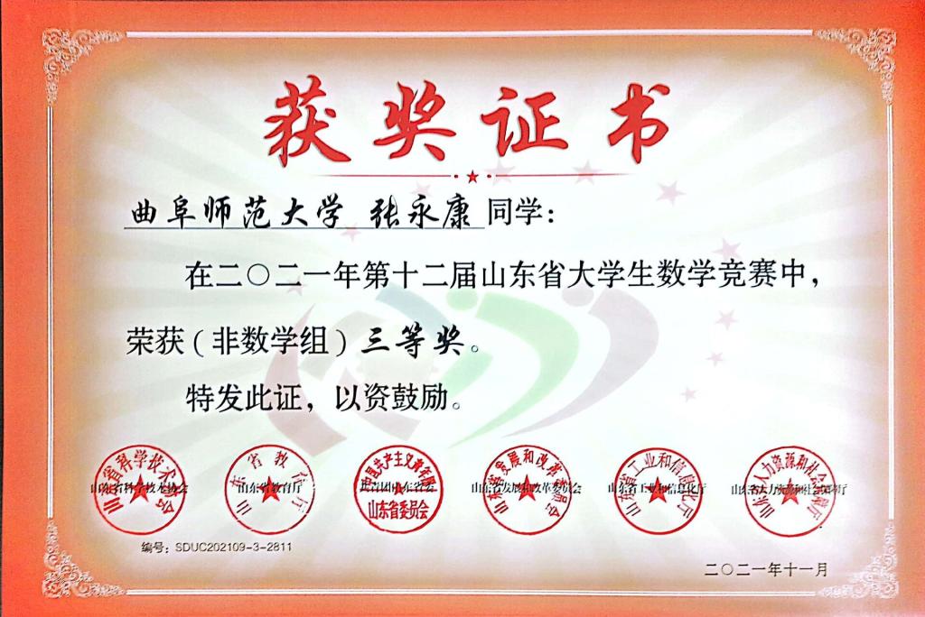 2018级高博文荣获非数学类一等奖,2018级房蕴珂获得二等奖,2020级倪嘉豪、张永康获得三等奖。经过本次竞赛,参赛学子展示风采、提高能力、锻炼思维,拥有了一次难忘的经历。同时也为黄色仓库