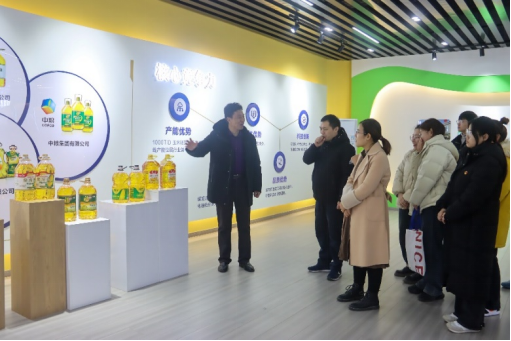 企业负责人引领参观者们走近其展览厅和玉米油生产线,讲解企业的文化理念和产品创新之处。企业的技术操作人员为参观者们介绍玉米油的生产环节,提到与课堂理论知识相关的环节,张兆顺老师为学生志愿者们做了详尽的解释和延伸。
