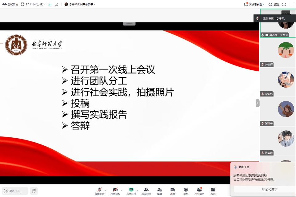 于1月17日下午16:00面向各社会实践队线上举办了寒假社会实践培训大会。