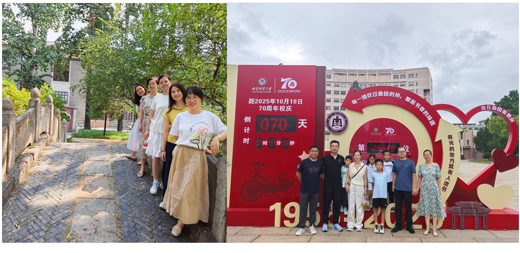 重返母校,校友们漫步于熟悉的校园中,走过系楼、综合楼,纷纷驻足合影。镜头定格的不只是笑脸,更是十五载青春的回响,是一段与母校难以割舍的情缘。孩子们在父母曾经的教室外奔跑嬉戏,仿佛时光在这一刻完成了某种庄严的交接。校园里的一草一木、一砖一瓦,都让这群“老同学”感慨万千,也让他们带来的“小同学”对大学、对未来产生了真切的向往。